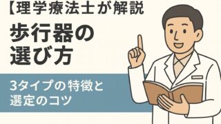 理学療法士 【理学療法士が解説】歩行器の選び方|3タイプの特徴と選定のコツ 高齢の親御さんを持つあなたは、ご両親の歩き方が危なっかしくなり「そろそろ歩行器が必要かも?」と感じていませんか。 歩行器... 2025.08.31 理学療法士
