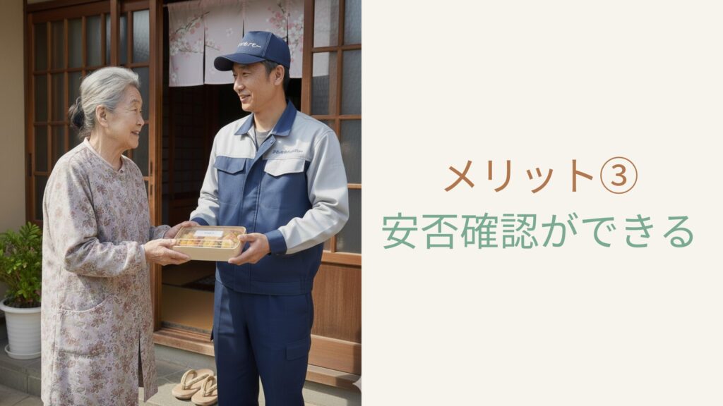 栄養バランスに配慮された献立や、調理の手間を減らせる点、配達時の見守り機能により親だけでなく家族の安心にもつながります。